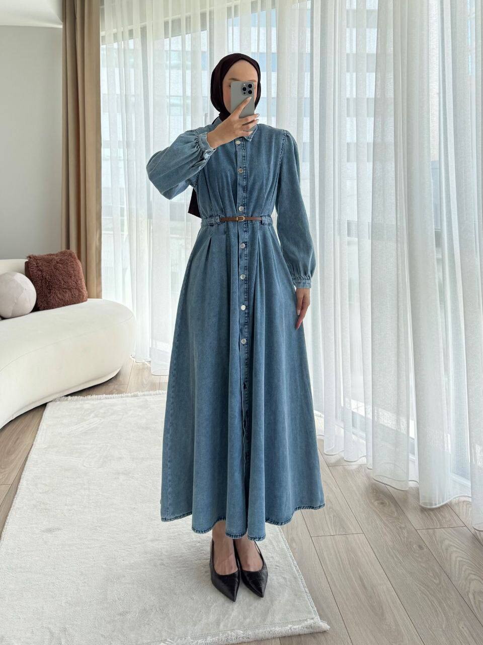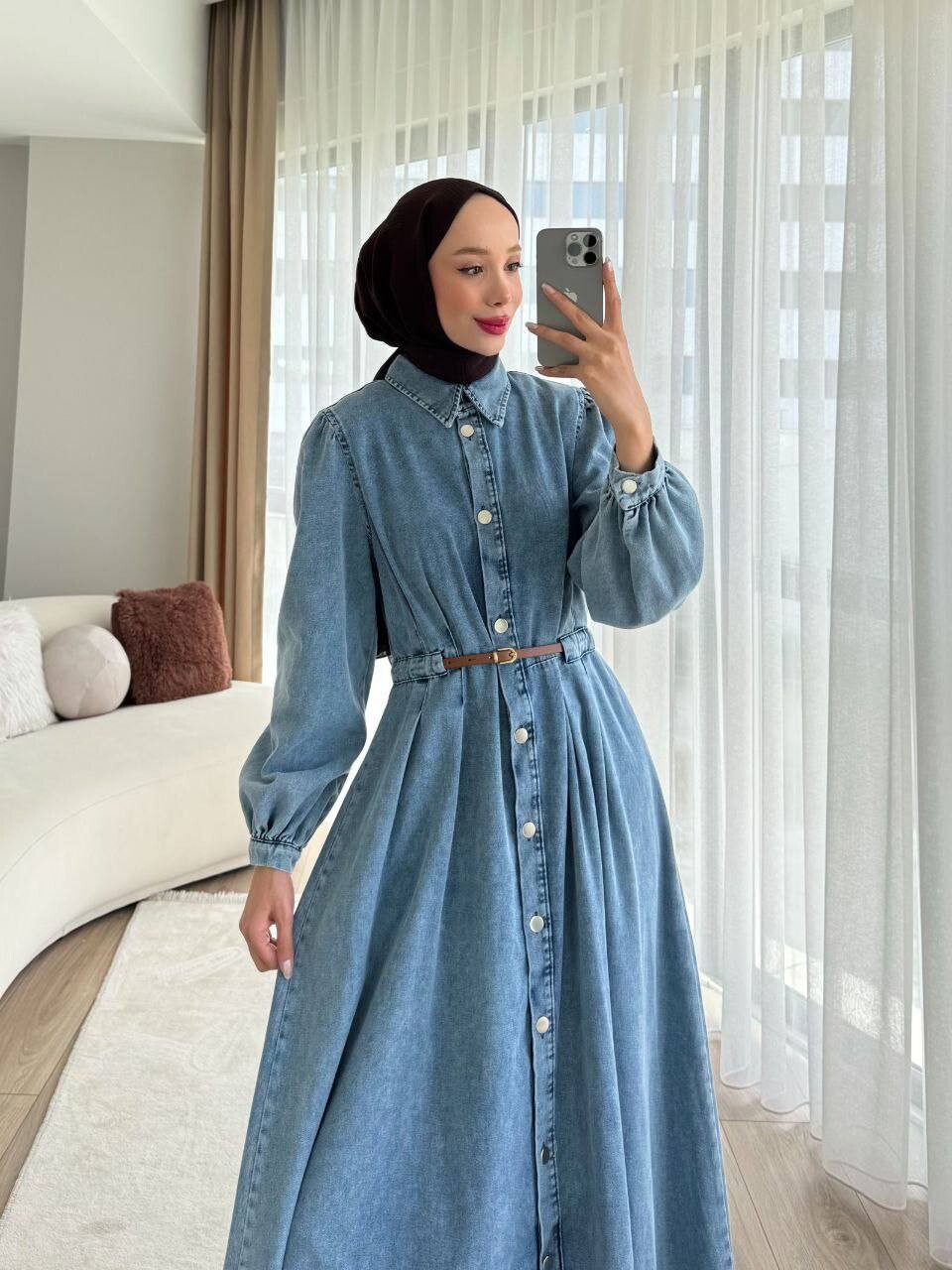 فستان جينز بتصاميم انيقة مع حزام جلد