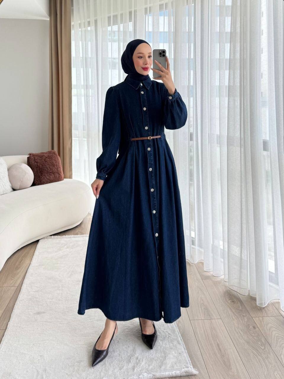 فستان جينز بتصاميم انيقة مع حزام جلد