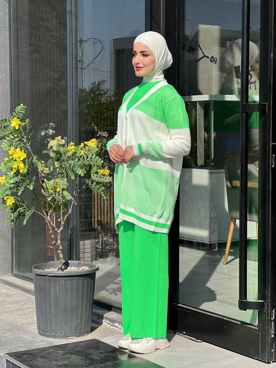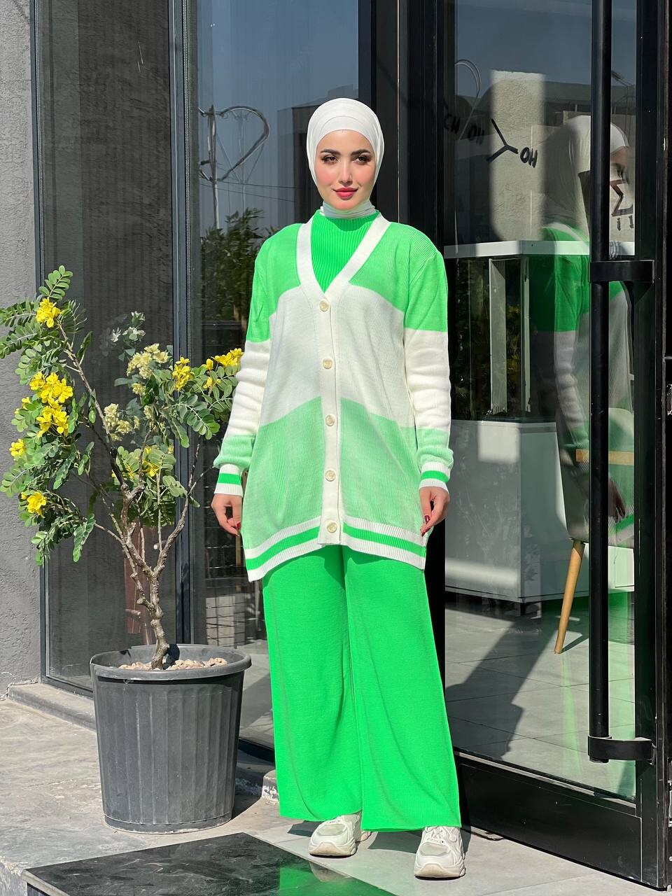 2223-1R-11 طقم ثلاث قطع تريكو ملون - اخضر