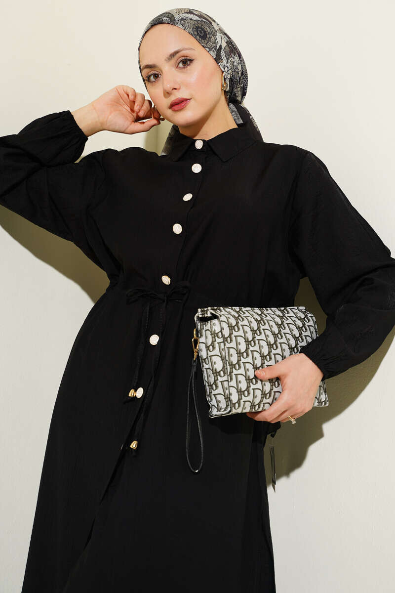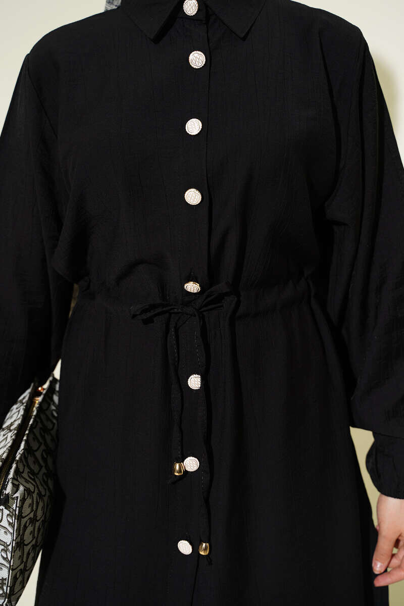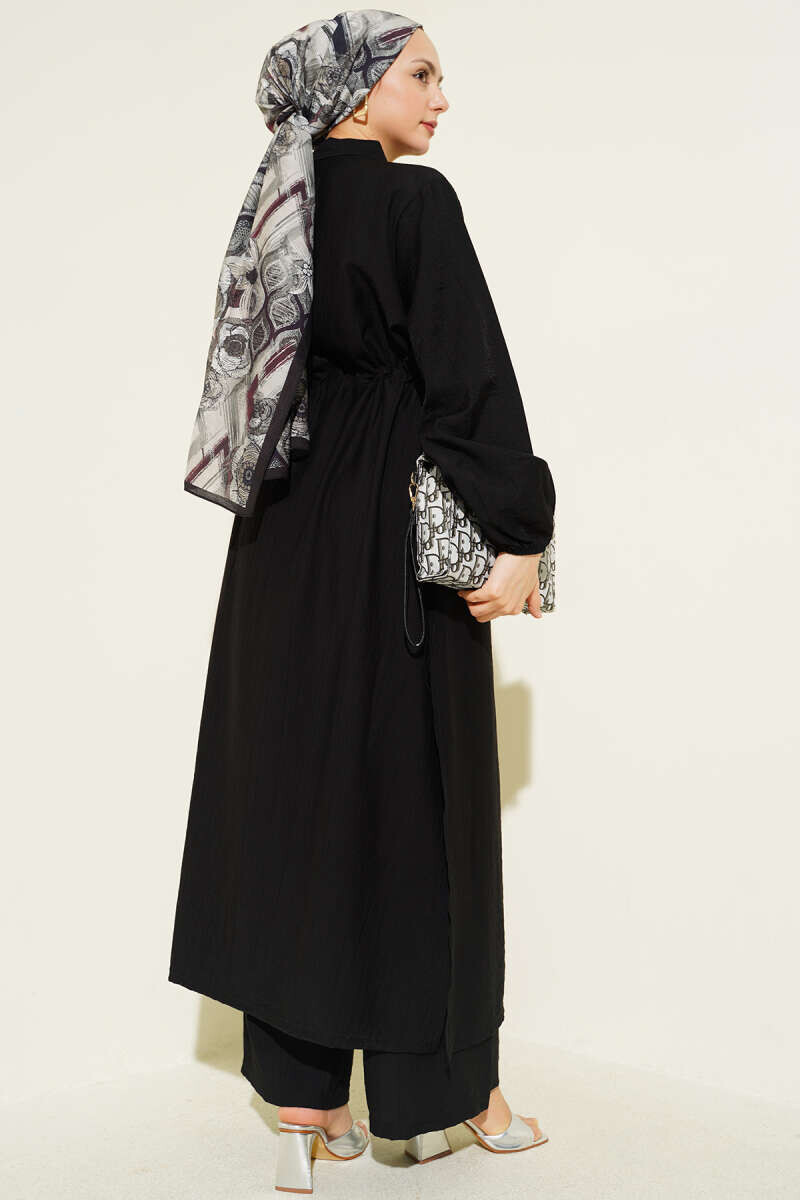 3332-26F-1 سوت قطعيتن قميص طويل - اسود