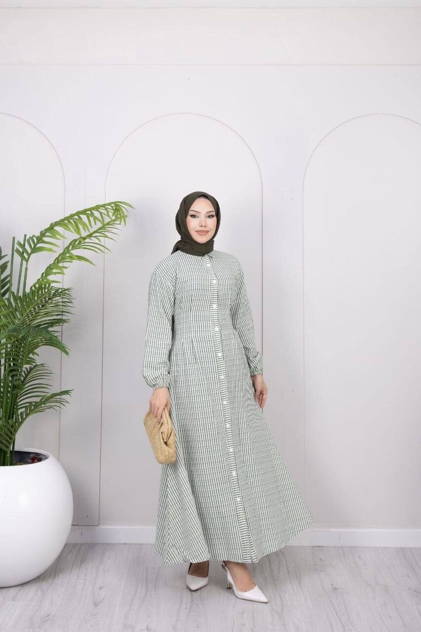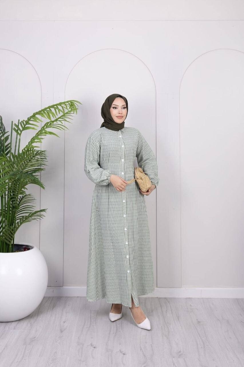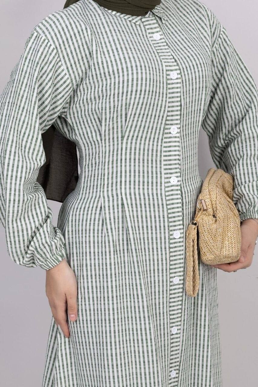 357-25L- 2 فستان مقلم - اخضر