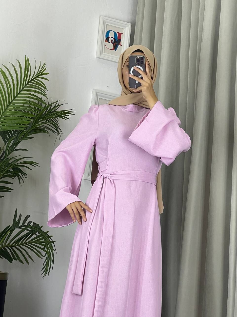 4536-41L- 3 فستان سادة لون وردي فاتح
