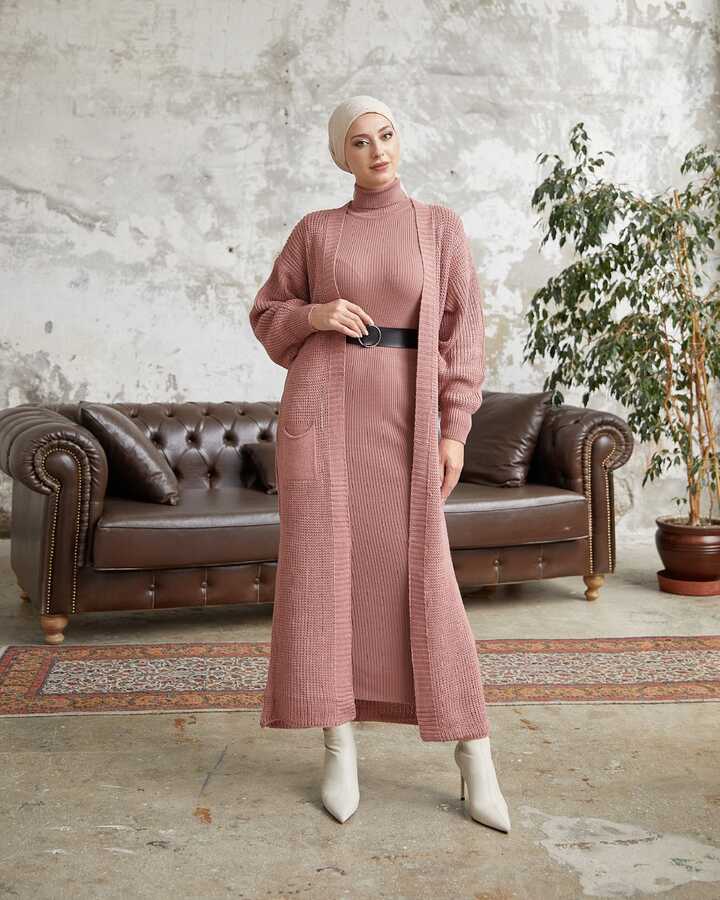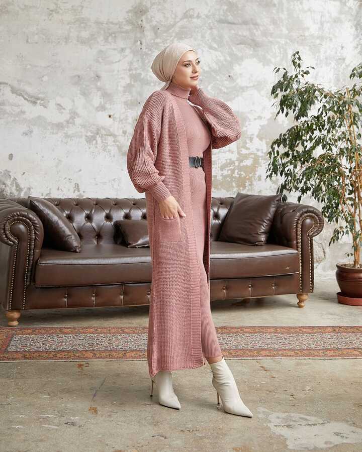 5648-89S-5 بشت طويل تريكو وردي