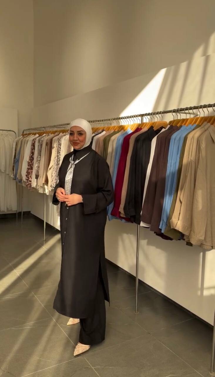 7854-16I-1 سوت بنطرون قميص طويل مع اسكارف- اسود