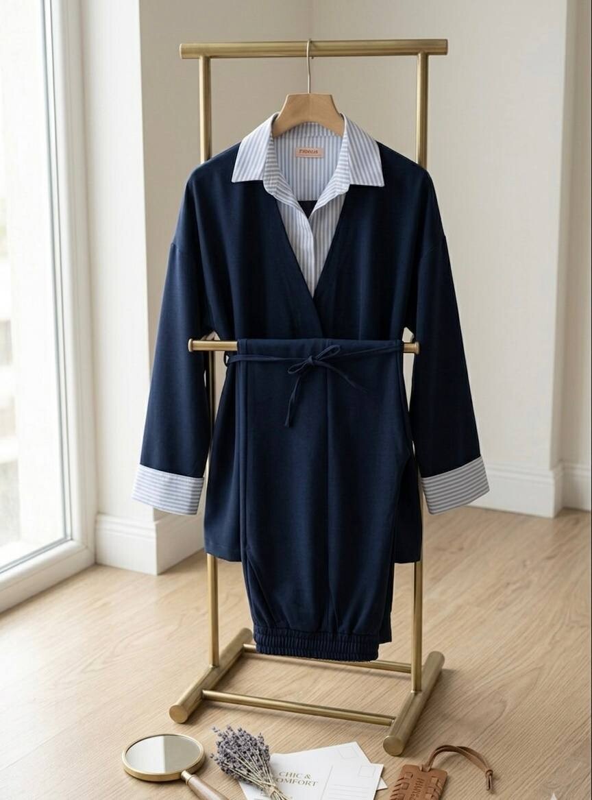 7856-20I-6 سوت ينطرون قميص متصل -نيلي