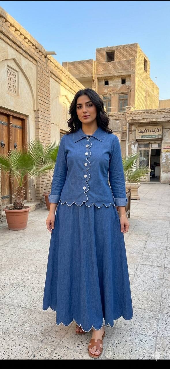 سوت تنورة و قميص جينز تركي صيفي